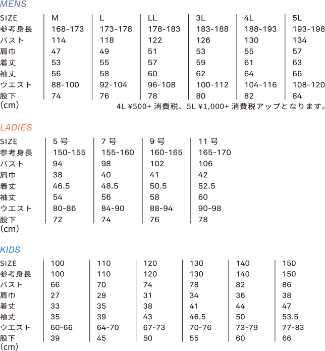 マジックテープ:袖口・ウエスト