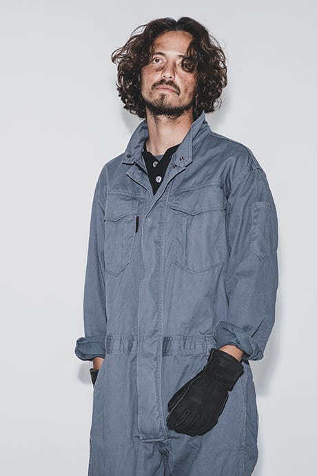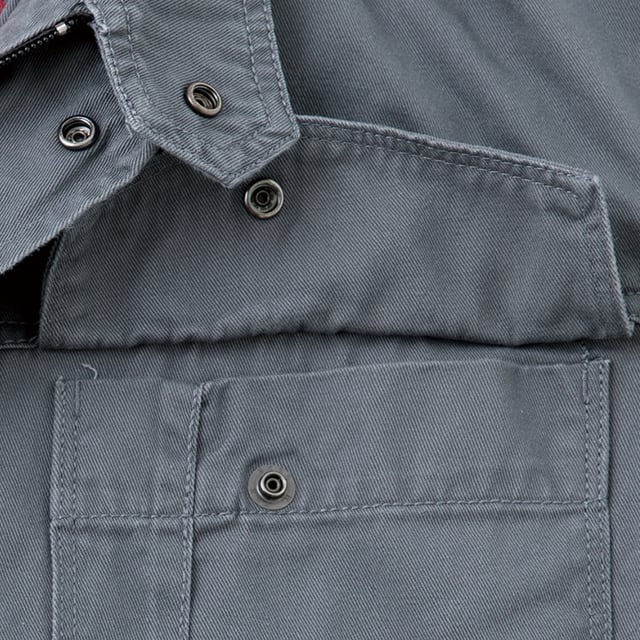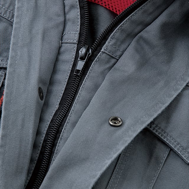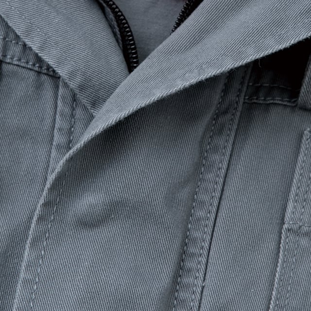 火の粉にも強いコットン100%の厚地生地を採用したハードワーカー向け仕様。火の粉の侵入を防ぐダブル比翼前立てに金属ボタンの隠し仕様、更に膝あては二重と玄人好みなツナギです。