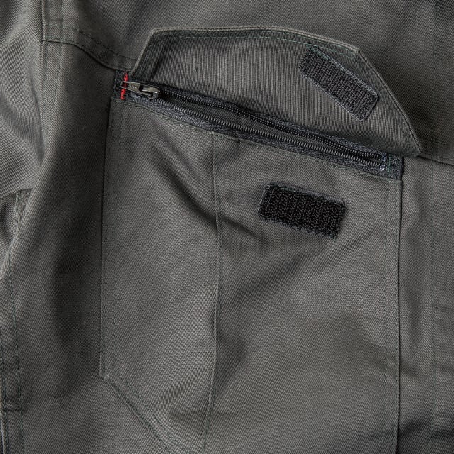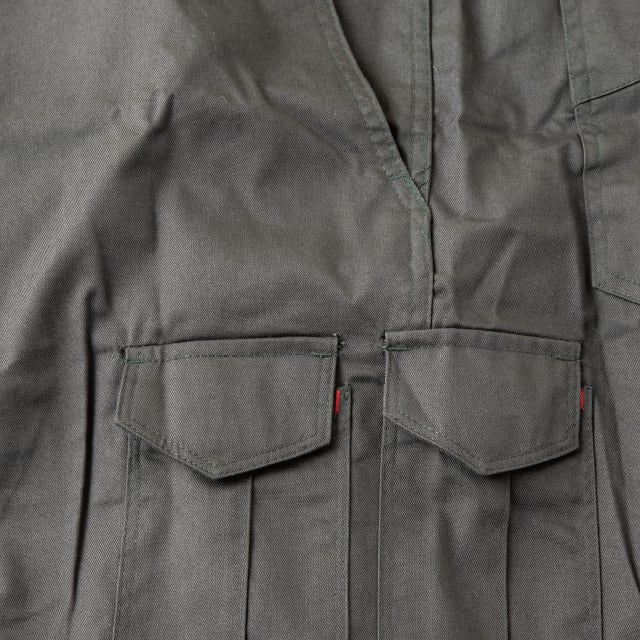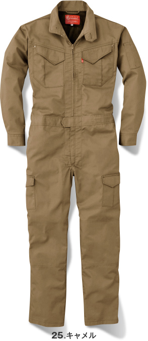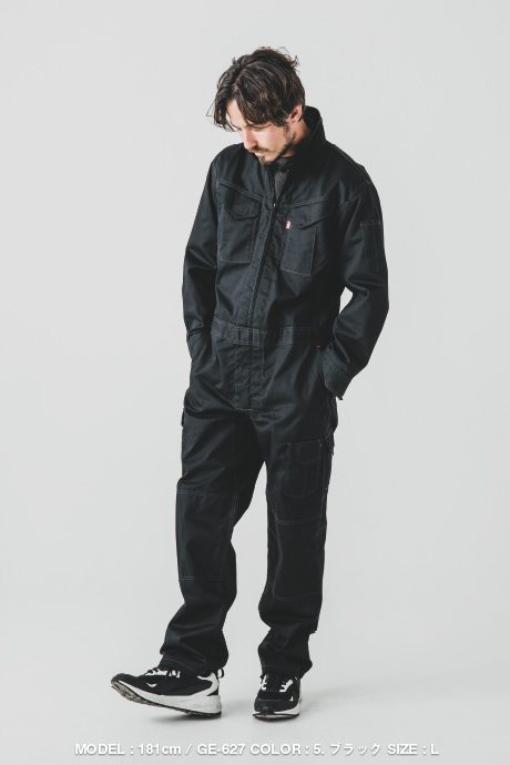 オーソドックスで扱いやすいポリエステルとコットンの混紡素材を使用したモデル。両胸ポケットはファスナーで小物の落下を防ぎつつ、ファスナーでの傷付けを防ぐためフラップで隠した仕様に。脇のツッパリ感をなくし動きをサポートする立体裁断も採用。ボトム脇には小物用ポケットもついており収納面も充実。ユニフォームとして最適な定番ツナギです。