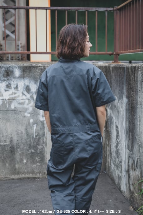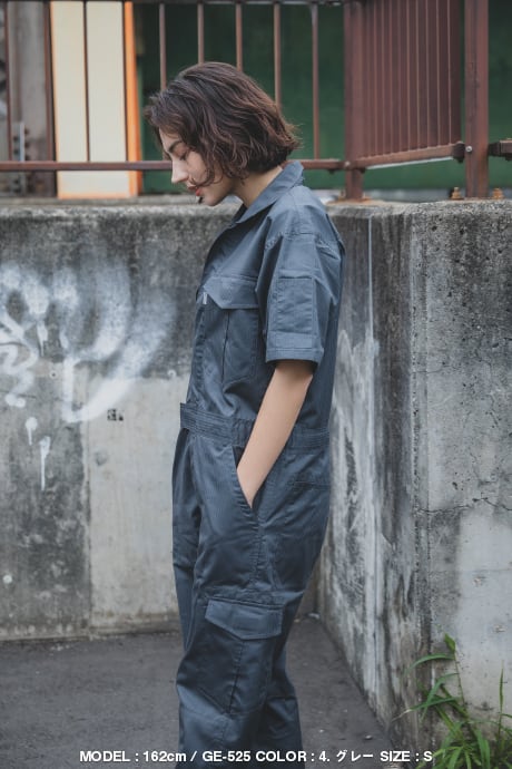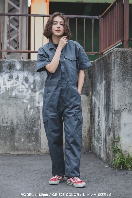 清涼感のある綿高混率のシャドーストライプ生地は、シンプルな中に違いを演出できます。実用性を考えた大きな胸ポケットはファスナーも付いており落下の心配もなく、夏のツナギでは珍しいボトム部分のカーゴポケットもあったりと収納面も充実。両脇下にはメッシュも使用しているため、ムレも軽減します。着こなしやすいカラーリングが揃った、大人顔の真面目なツナギです。