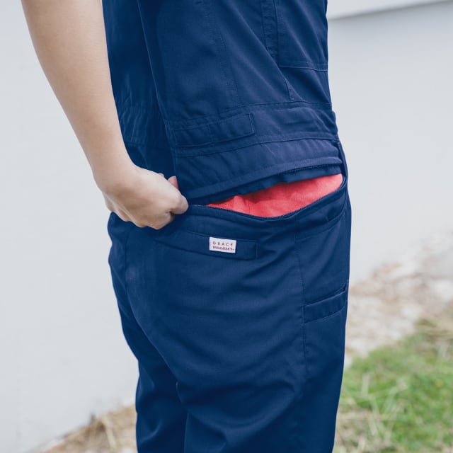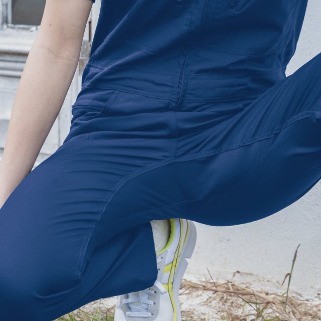大人気の特許取得ヒップオープン機能『GRACE BACK®』の便利さと、 速乾性がある軽量素材と多数のベンチレーションメッシュでムレを軽減させた快適さがあります。カラーも女性らしいくすみカラーでスポーティに、定番ネイビーも夏らしい色味にしてあり、見た目と実用性の両面から気分が上がる他にはないツナギです。