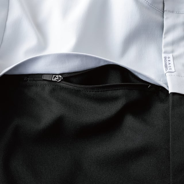 どこか懐かしさがありつつも、現代風スポーティーなモダンさも併せ持ったグレースエンジニアーズにありそうでなかったデザインテイスト。スペックはプロ仕様で、東レ㈱の高機能素材「ライトフィックス®」を採用、安心安全の帯電防止生地で軽量さとストレッチ性も備えています。グローブなどの収納にも便利なスリップインポケットや、何を入れるかはあなた次第のシークレットポケットなど、ディテールにもこだわった個性溢れるツナギです。