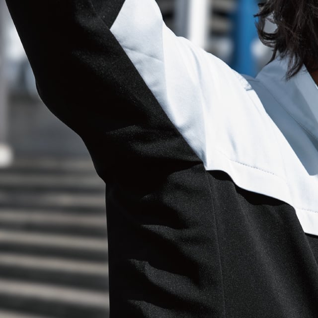 ライトフィックス®は特殊仮より技術を使用したポリエステル加工糸と、高度な生地設計との組み合わせによって適度なストレッチ性とストレッチバック性を発現することができる高機能素材です。