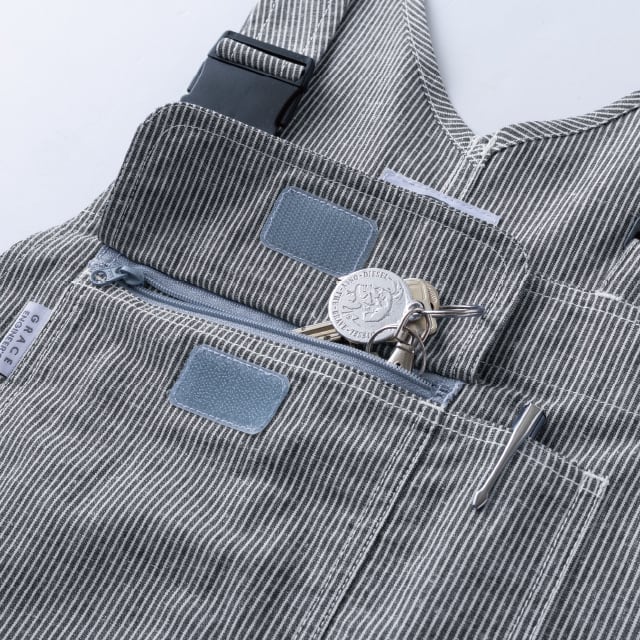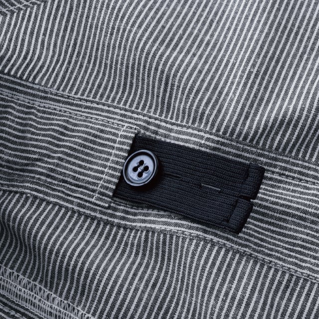 肌あたりと吸水性の高い綿と吸湿性と速乾性がある麻を合わせた夏に最適なオリジナル生地を使用。サロペットではまだまだ珍しい便利機能『GRACE BACK®」がついており、肩のバックルを外すことなく気軽に用をたすことが出来ます。涼し気な印象を与えるルーズなシルエットですが、ウエスト内側のアジャスターでお好みなスタイリングも可能。夏になると着たくなる、そんなサロペットです。