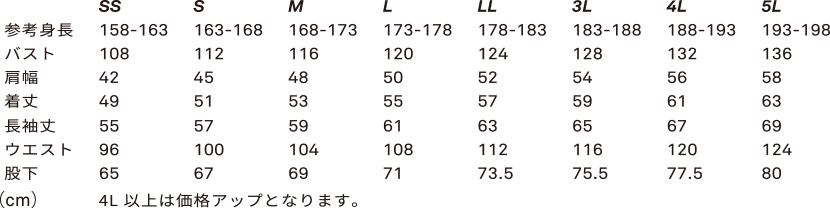 マジックテープ:胸ポケット・ウエスト・カフス